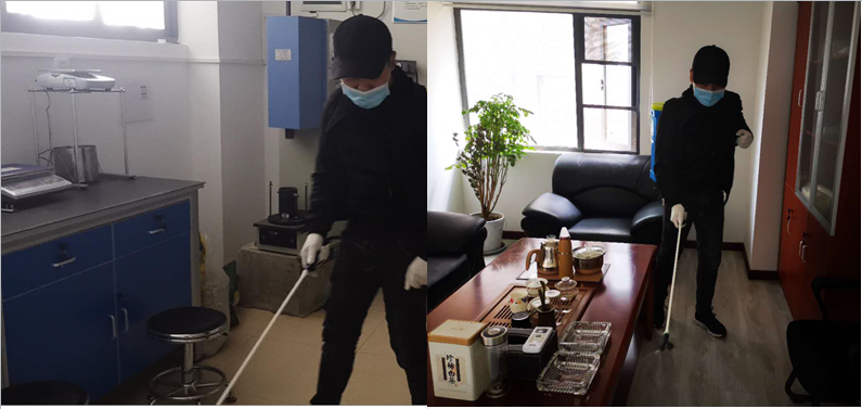 輕工工程公司孝感分場所試驗室、辦公室、員工宿舍消毒,為復(fù)工復(fù)產(chǎn)做準備